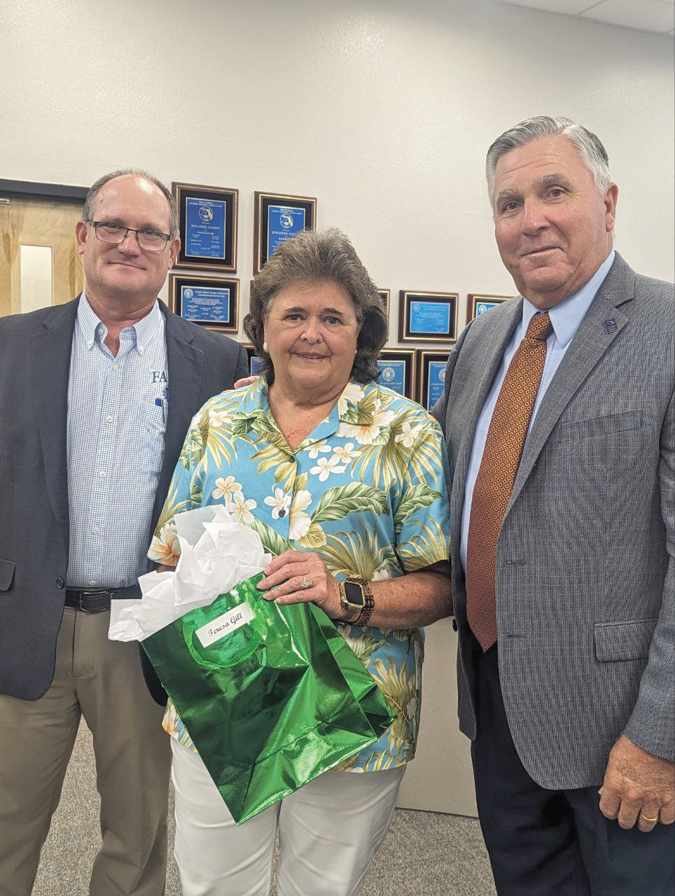 “It's not lost. It's a rare quality, but it's still here, and I see it on the faces of every single one of you. You all are the ones who make a difference.” Each retiree was presented with a gift bag containing a gift card and wind chimes, signifying the coming of the “winds of change.” Following the recognitions, the board continued with the rest of its meeting before adjourning. The next regular Suwannee County School Board meeting will be held at 6 p.m. on Tuesday, July 25, in the Suwannee County School District's board meeting room, located at 1740 Ohio Ave. S, in Live Oak.