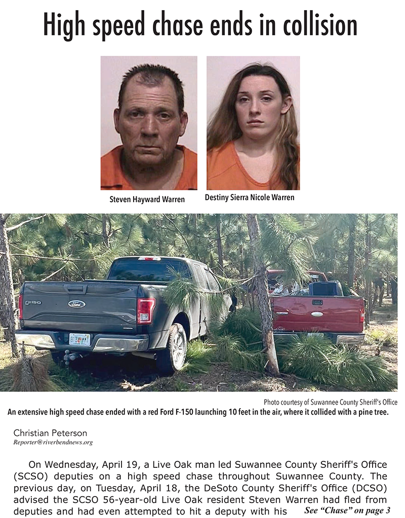 High Speed chase ends in collision Posted on April 27, 2023 Read the full story in our latest edition of the Riverbend News! Share this: Share on Facebook (Opens in new window) Facebook Share on X (Opens in new window) X Related