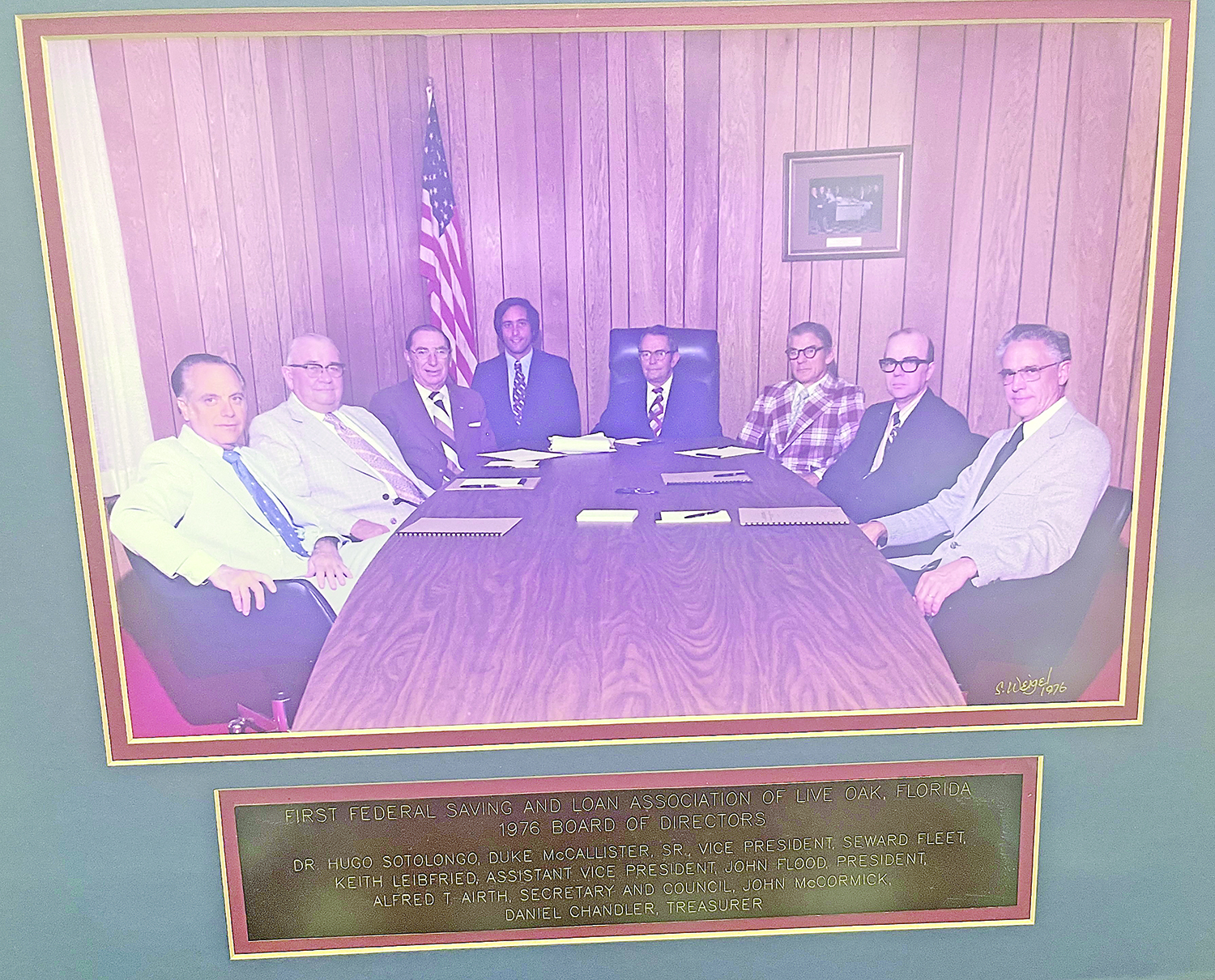 Today - At the age of 101, Dr. Sotolongo is the only remaining founding board member of First Federal Bank. He is still living in Durham, N.C., and is frequently visited by his family. I recently had the high honor of visiting Dr. Sotolongo and was able to express my/our profound appreciation for his many years of service to humanity, our community, First Federal Bank and, yes, for caring for multiple generations of my family. We discussed old Cuba, Live Oak (then and now), the bank, his former friends and patients, and the good he has done in this world. He is still gregarious as ever and small in stature, but as much of a giant today as he has been his entire life.